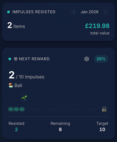 We believe this "Resisted Money" shouldn't just sit in your current account by accident. It should be celebrated and utilized. By tracking your "Resisted Score" in Impulsv, you get a clear number at the end of the month that represents your discipline.